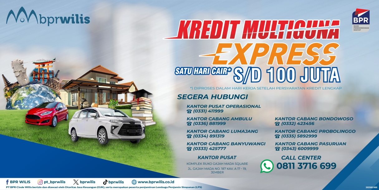Informasi lebih lanjut dapat menghubungi kantor kami, melalui call center (WA) 08113716699 atau melalui form permohonan layanan kredit melalui link : Form Layanan Informasi Kredit BPR Wilis
